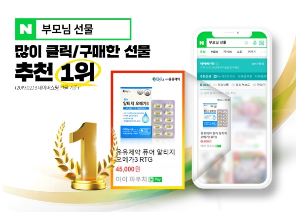유유제약 퓨어 알티지 오메가3, 부모님 선물용 건강식품 판매 1위