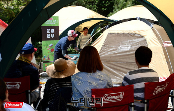 [뉴데일리-정상윤 기자] 캠핑 브랜드 콜맨이 25일 경기 여주시 참숯마을 오토 캠핑장에서 열린 2018 우리 아이와 함께하는 첫 캠핑 시즌2(이하 우아캠)에 참가한 가족들에게 텐트 설치방법을 소개하고 있다. 우아캠은 캠핑을...